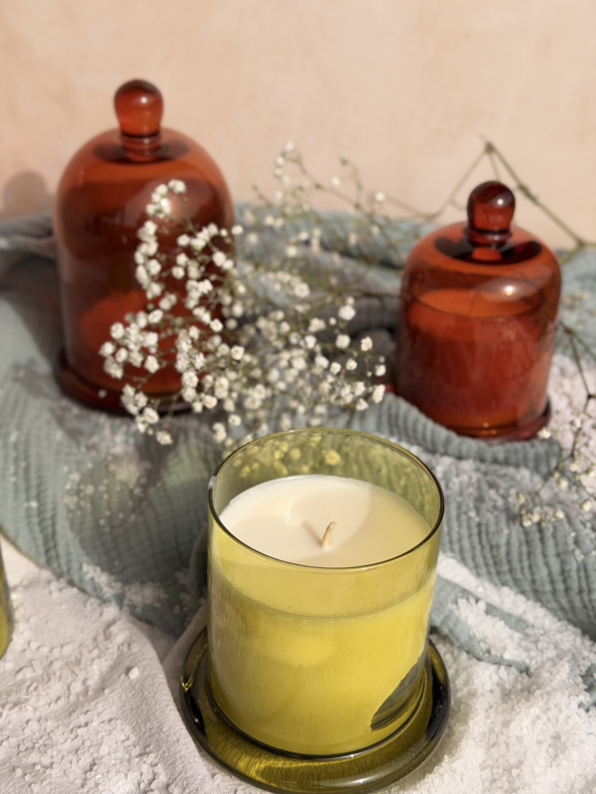 Sogno dorato Candles : De kaarsen die ik maak bestaan vooral uit glaswerk en af en toe uit porselein. Ze worden steeds gemaakt in kleine oplages voor mensen die hun huis willen vullen met een heerlijke geur en sfeer. Het vaste gamma kan je bekijken onder “Signature line” en daarnaast kan je de “specials” vinden die nauw aansluiten bij het seizoen en voorzien worden van iets meer decoratie of speciale pot zodat ze je direct meenemen naar het moment.