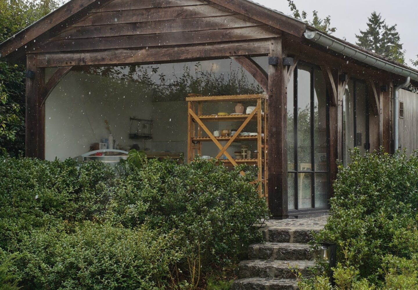 Je krijgt vier uur toegang tot mijn ruimte, inclusief het gebruik van de draaischijf, klei, glazuren en het prachtige zicht op de tuin.