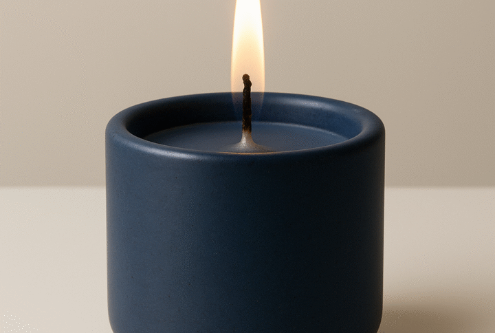Geurkaars met schattige kattenpootjes en slapend katje, omringt door een geur van zachte rozenblaadjes.