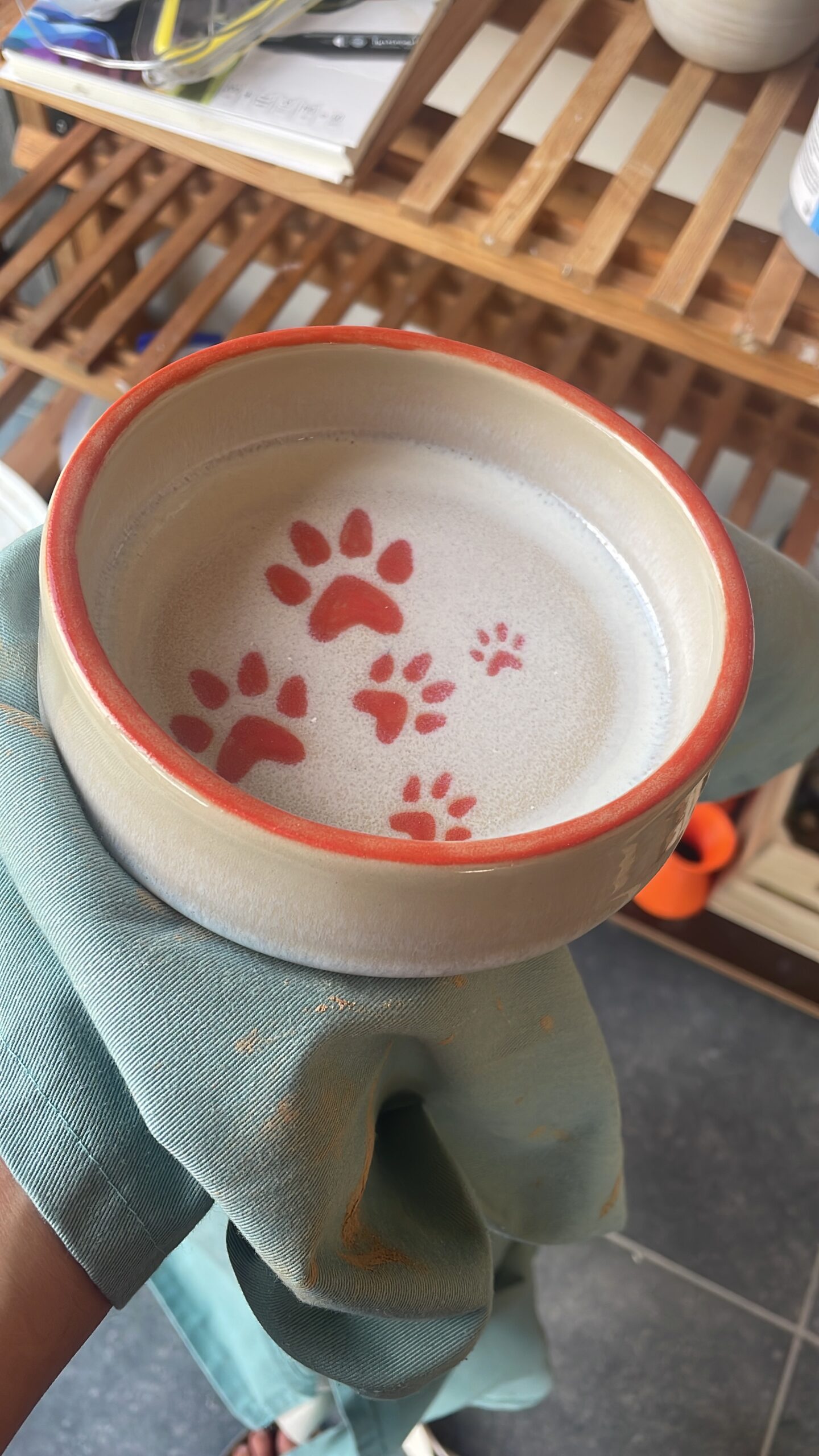Een vrolijke hondenkom met speelse pootafdrukken. Stevig, praktisch en een leuke blikvanger in huis.