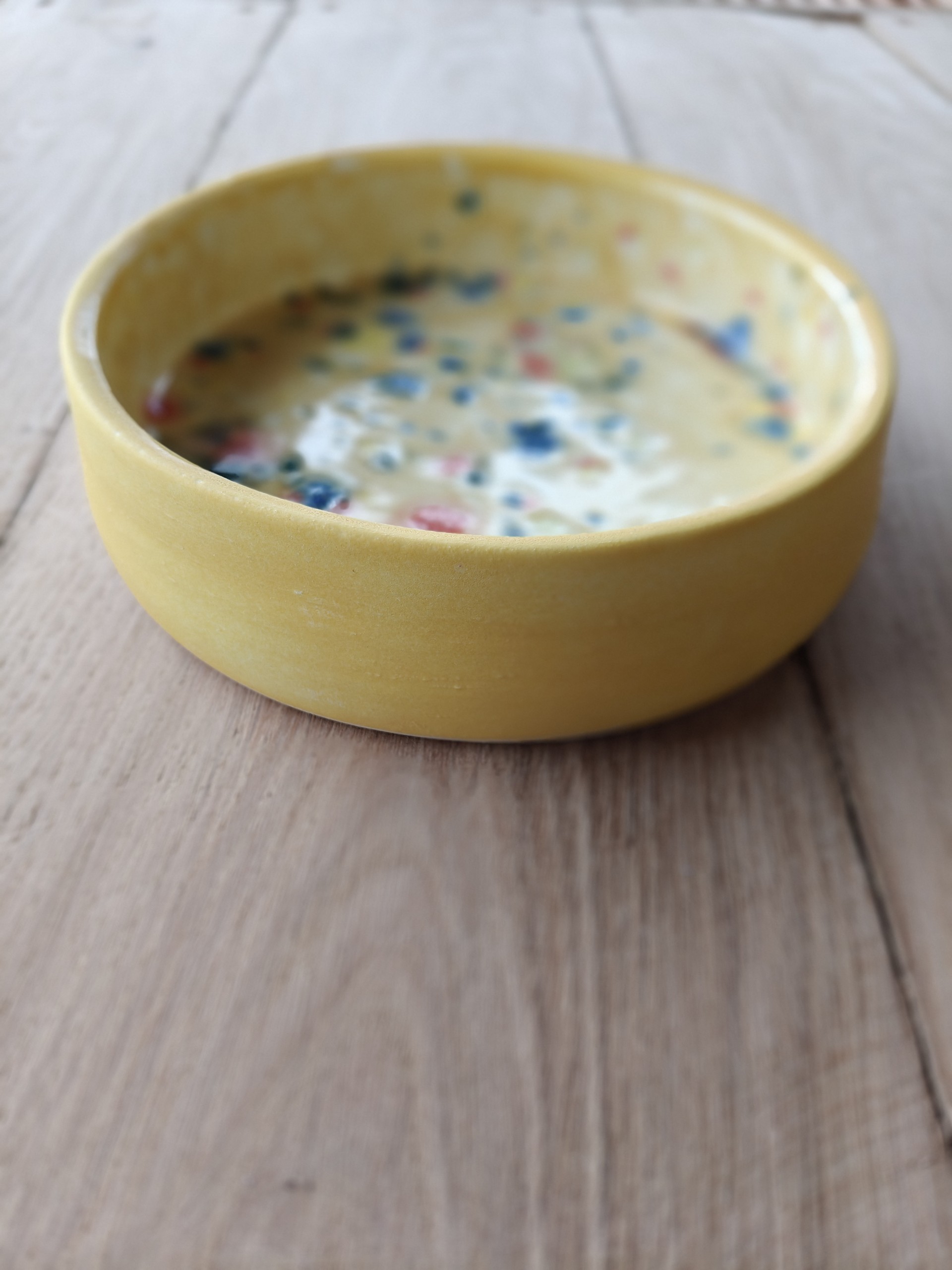 Een speelse kom met levendige kleurschakeringen. Elke kom is uniek en brengt vrolijkheid in huis en bij je viervoeter.